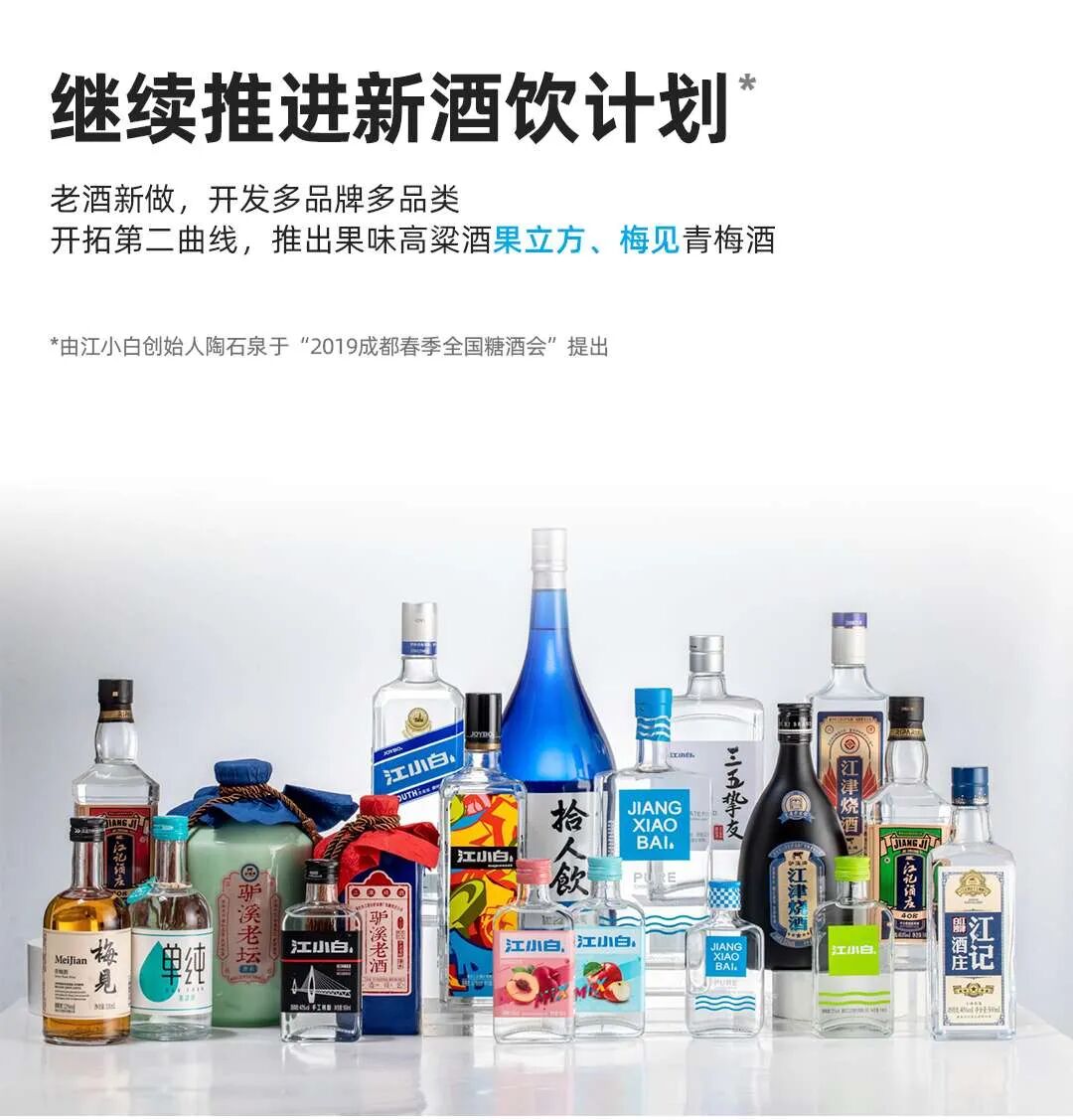 在今年8月底的亚布力论坛演讲中,陶石泉表示一款表达瓶打天下的时代已经过去,江小白非常坚定地从单一品牌、单一产品走向多品牌、多产品,以不断拓宽酒饮消费市场的边界。