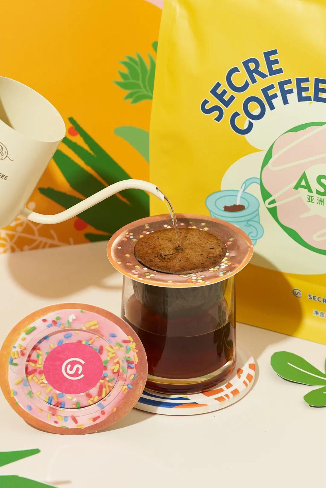 不过此处需要加注一点的是,「小甜圈咖啡」并非只是设计上新颖奇特,还对传统挂耳咖啡包装做了功能性升级,通过首创的半球形滤杯,降低了冲泡门槛。消费者不需要手冲壶,也不需要特别的技术,就能冲出一杯接近手冲的咖啡,俨然是小白福音。