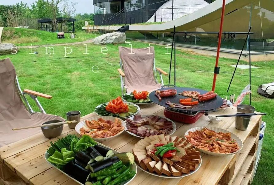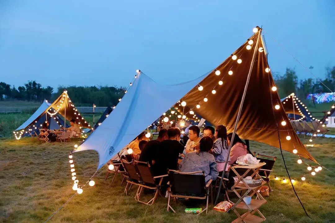 围坐在帐篷下,分享美食分享故事