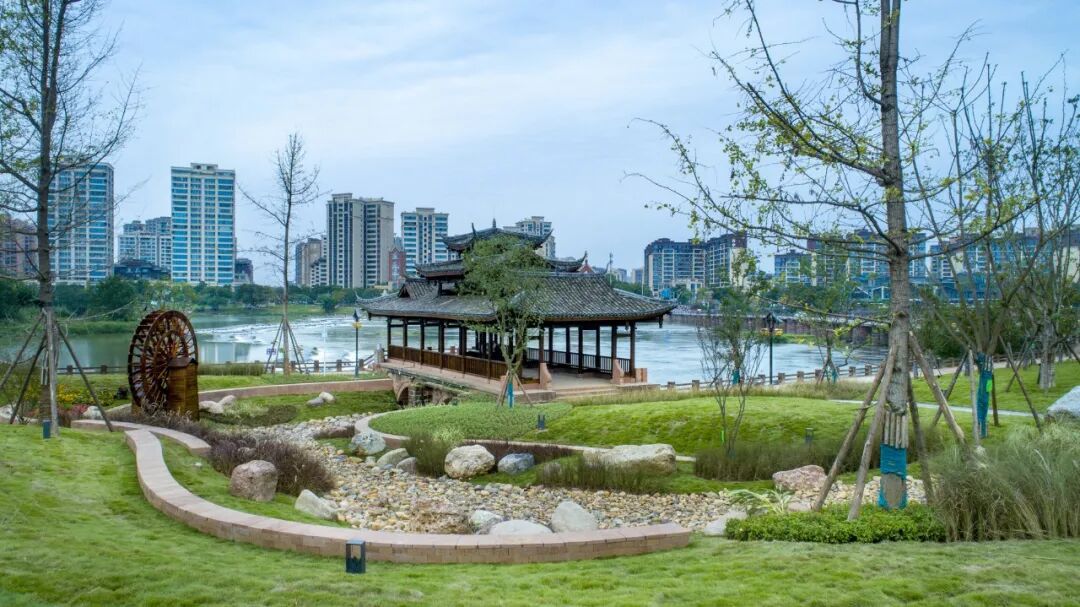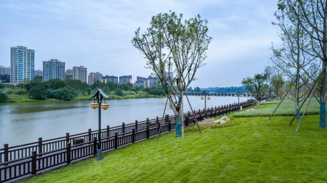 以邛窑遗址公园为核心打造的河滨栈道及绿化工程