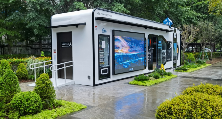 除了具备公厕污水零排放,粪便无害化的优点外,城市家具式的智慧公厕不需土建施工、无需建设下水管网和化粪池,在工厂内即能完成全部生产组装,不仅设置快捷,也一定程度解决了城市建成区公厕点位不足、群众如厕不便、插入补建公厕困难的问题。