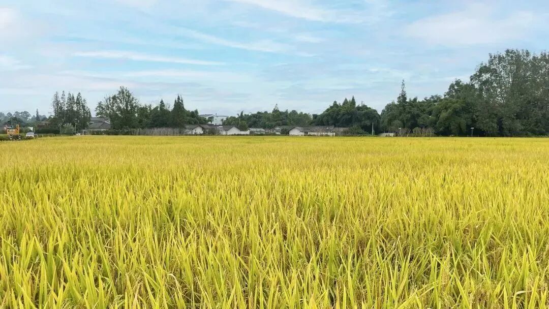 9月30日,天府现代种业园内的上千亩水稻刚刚收获结束,稻田内铺满了金黄的秸秆。金色的原野上,一栋栋展馆大楼拔地而起,和田野融为一体。