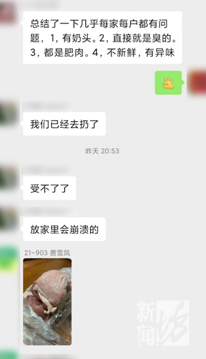对于有居民反映猪肉有发臭的现象,前述工作人员表示,产品质量有严格把控,“现在很多骗子会仿冒我们的包装,目前还在调查中,暂时还没有处理结果。”生产商湖南颐丰食品有限公司的法定代表人告诉澎湃新闻,已经将有关情况反馈至具体的职能部门。