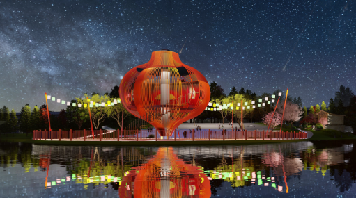 投影于湖面营造景观氛围,直接把氛围感拉满了!令人十分期待~