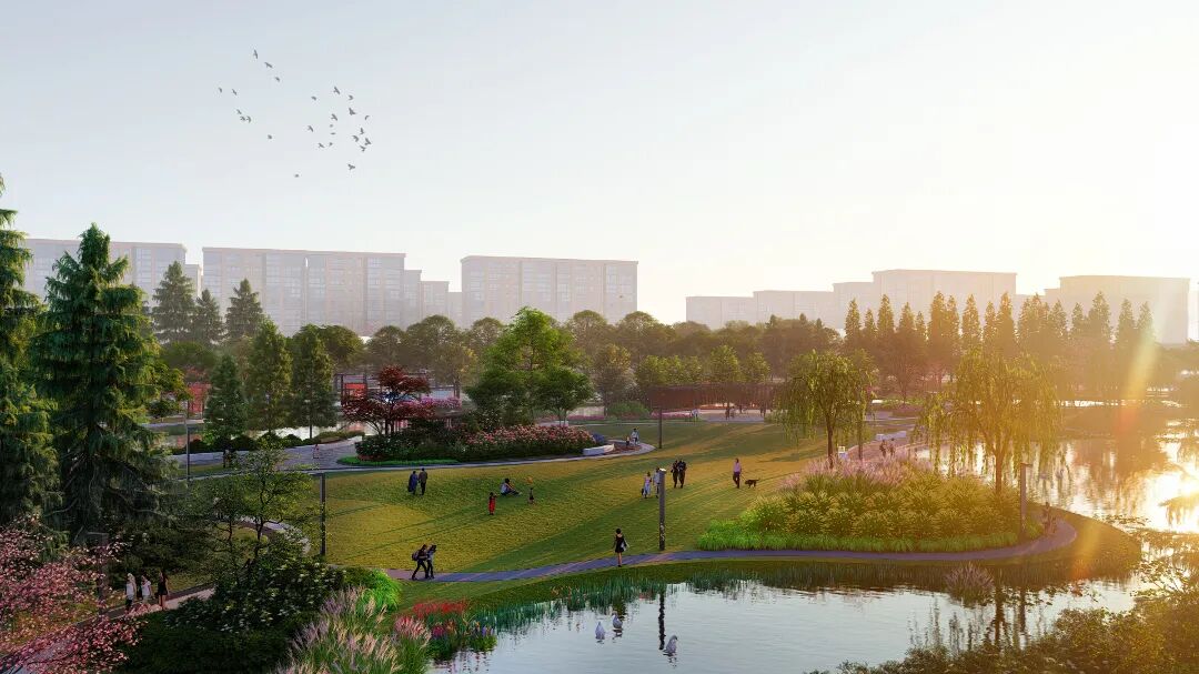 公园以罗店最具代表的“三湾九巷十八弄”的水乡街市为灵感设计,构建立体化景观空间层次。
