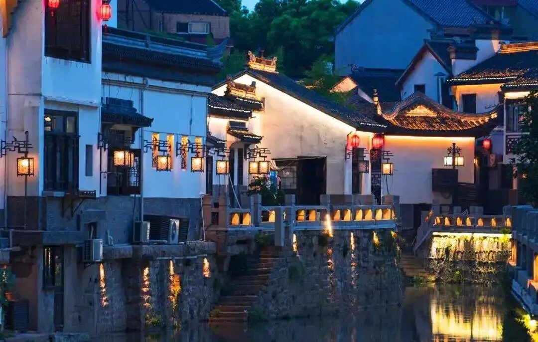 公园内的景观以曲桥相接,小船流水、夜泊水岸,闲行漫步间,如同罗店民俗画里的生活场景呼之欲出,仿佛人在画中游。