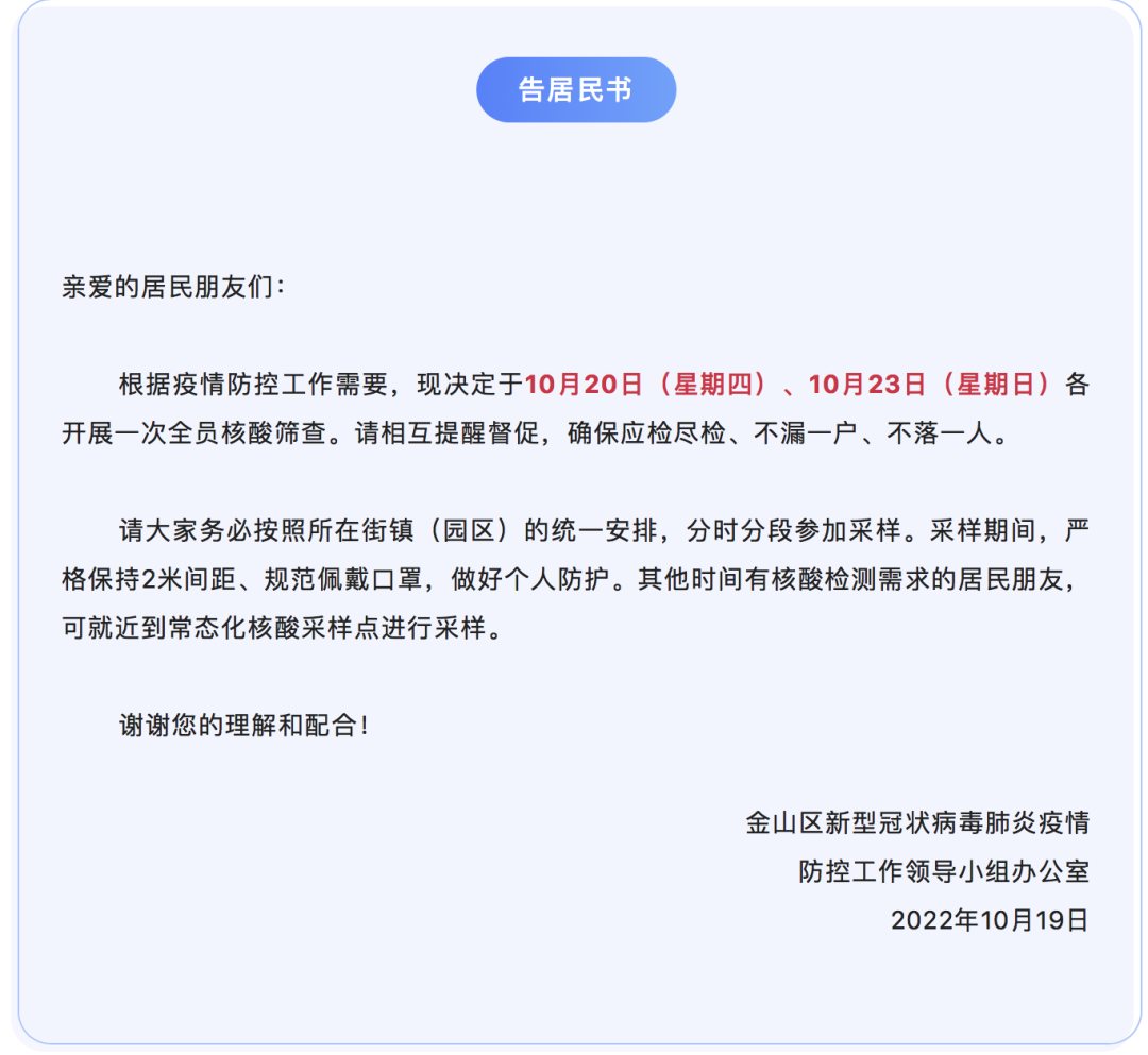 最新发布核酸筛查安排告居民书