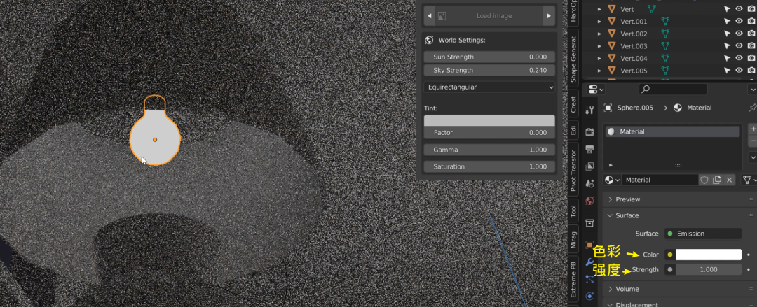 调整强度,可以定义外部环境的亮度,如果是要做夜晚氛围,当然应该把它的数值拉低一点: