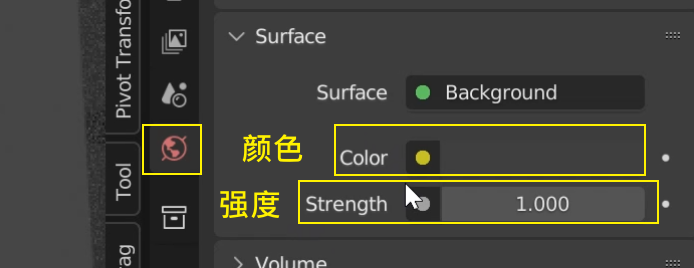 在 Surface 栏里的 Color 颜色 和 Strength 强度 是最常用的调整参数。