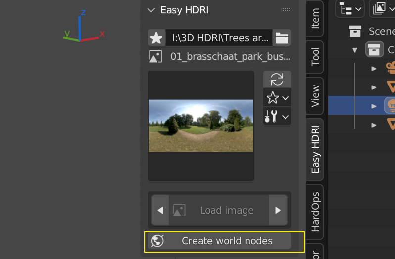 选好 HDRI 贴图后,点击插件下方的 Create world nodes 创建世界节点: