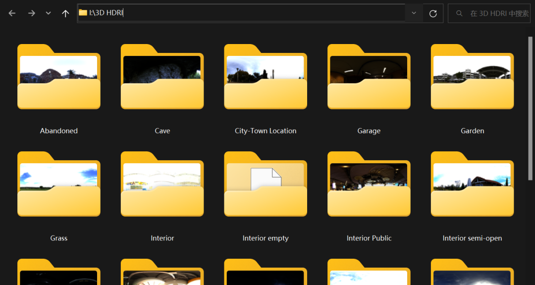 下载的图片,把它放在你的硬盘固定位置,最好是英文路径,比如我的是在 I盘的 3D HDRI 这个文件夹里: