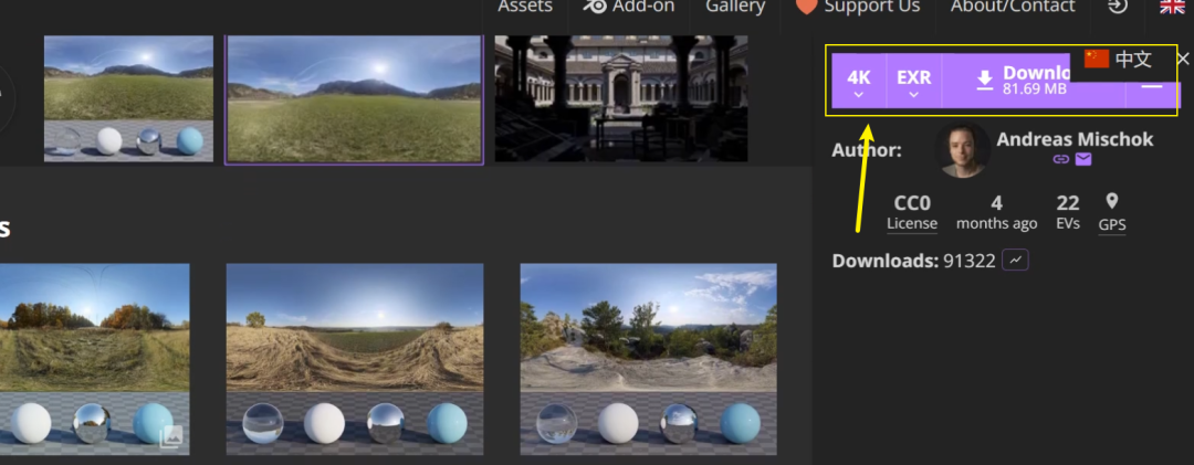 也可以到下面这个网站上下载免费开源的 HDRI 贴图: