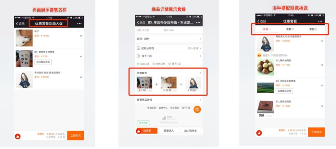 优惠套餐可以提高商品曝光,买家在浏览商品详情页时,会看到相关套餐的其他商品。可以引发关联购买,买家以优惠价一键购买整个套餐,提高关联销售。