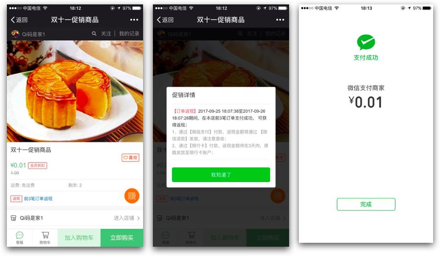 不仅能降低商品单价,提高用户的购买欲望,也能刺激用户在同一家商家进行多次消费。订单返现功能是一个针对全店铺的营销工具,在做活动时特别管用,还能很好的把引来的流量转化成销售。