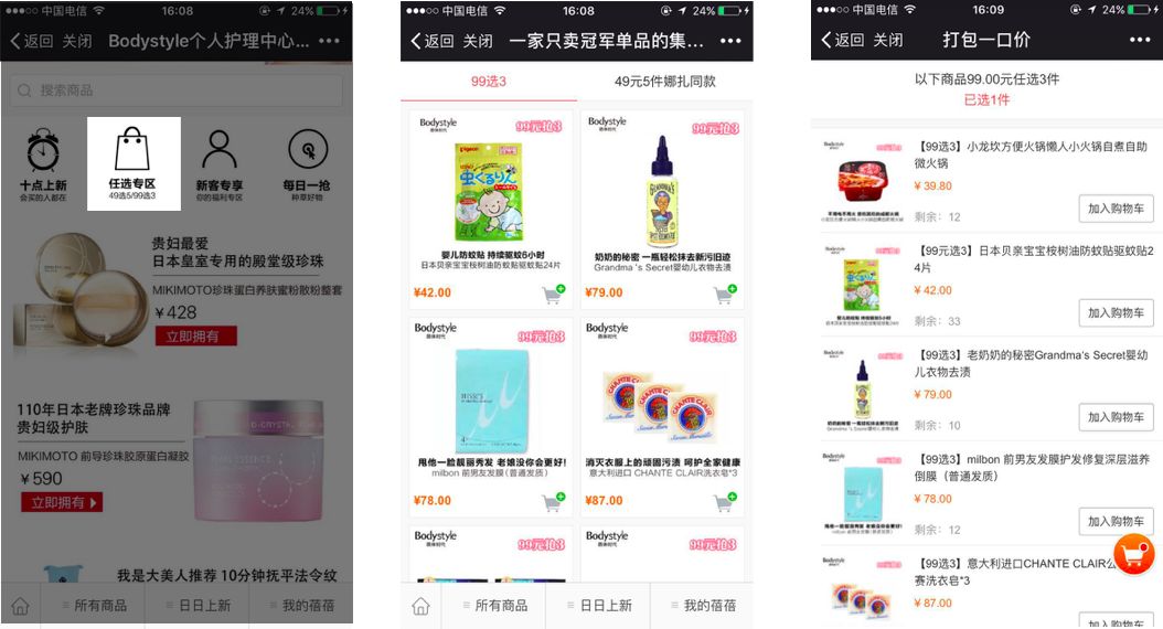 “打包一口价”是一款帮助商家增加商品销售、提升客单价的促销工具。使用该营销工具商家可以设置全场活动,如“全场99元任选3件”。