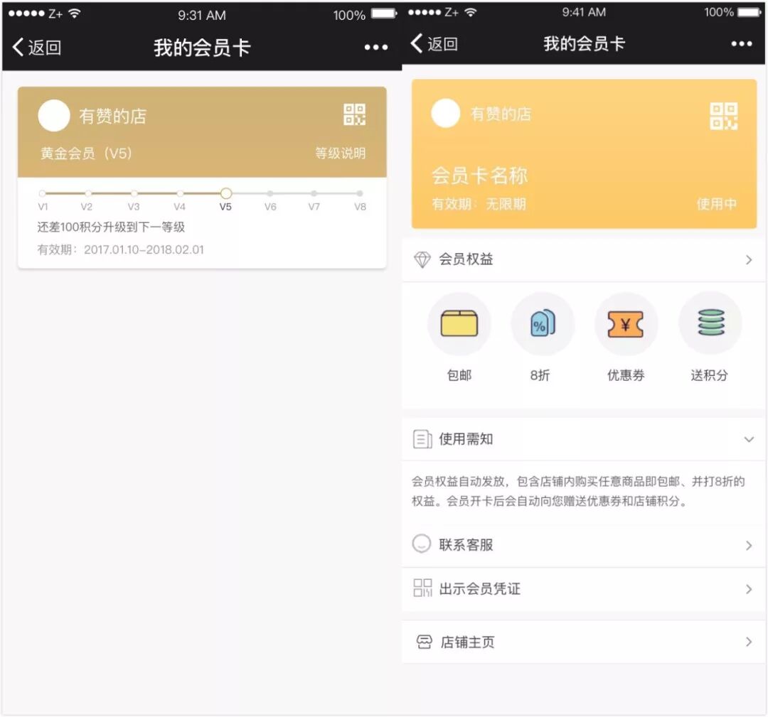 1、小程序支持会员卡和会员权益,帮你留住高价值客户