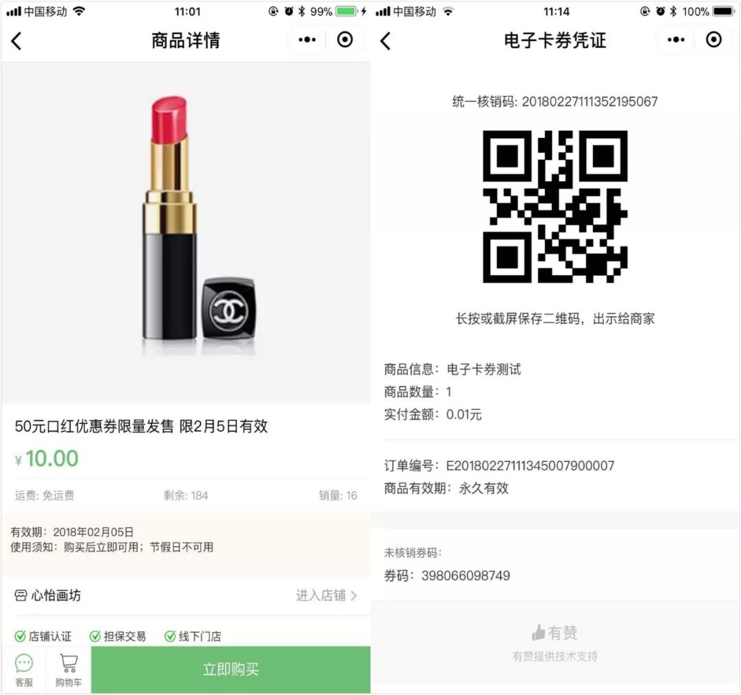 为此,有赞小程序上线销售电子卡券商品的功能,满足销售代金券、优惠券等场景。
