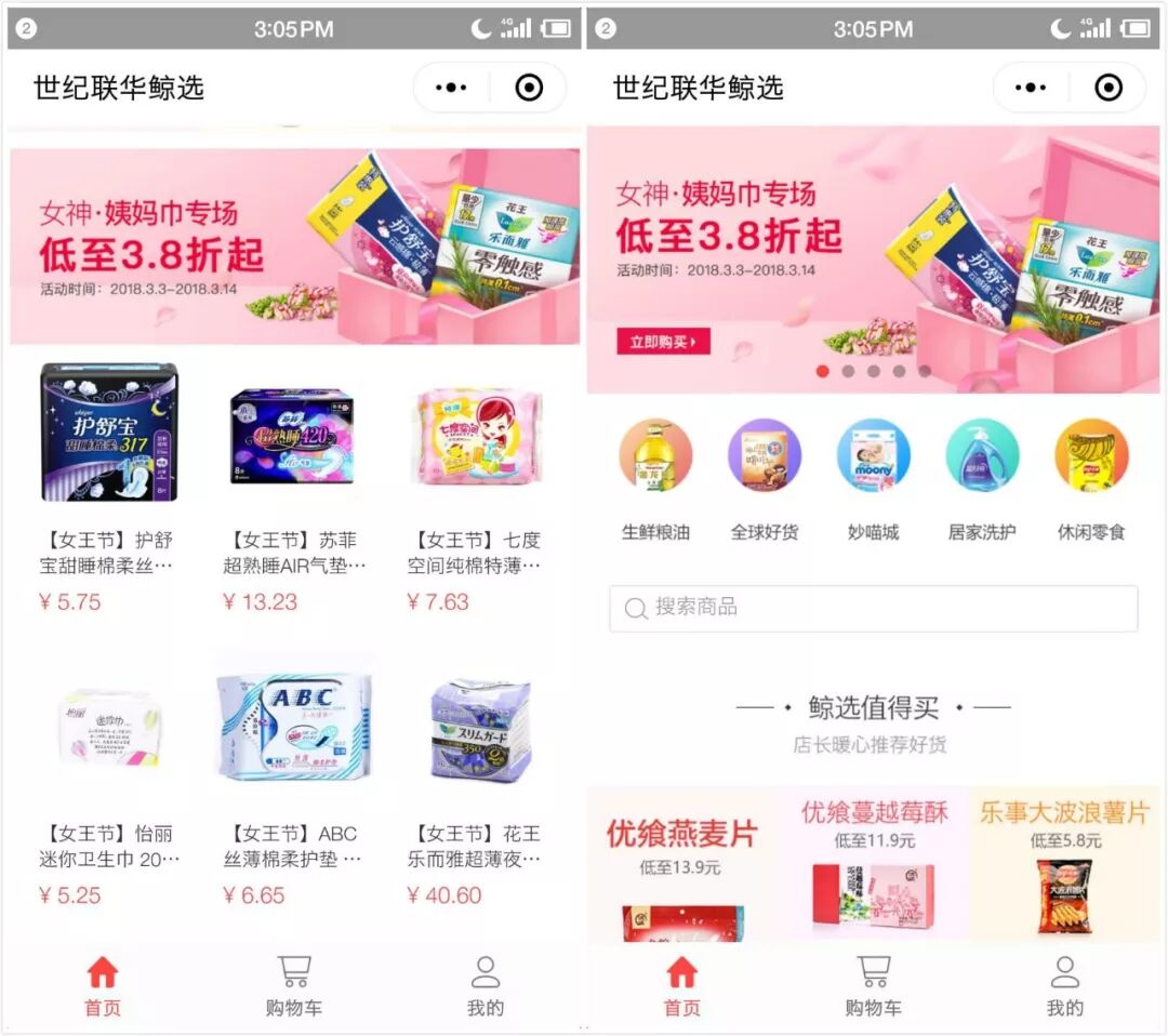 双12期间,微信用户在鲸选商城的小程序用975元购买1000元的充值卡,并被引导到线下门店核销,因此顺利将线上流量引至线下,助力销售额达到1000万,还应用限时折扣等营销功能,叠加公众号菜单等入口的接入,为小程序引流,提升销量。