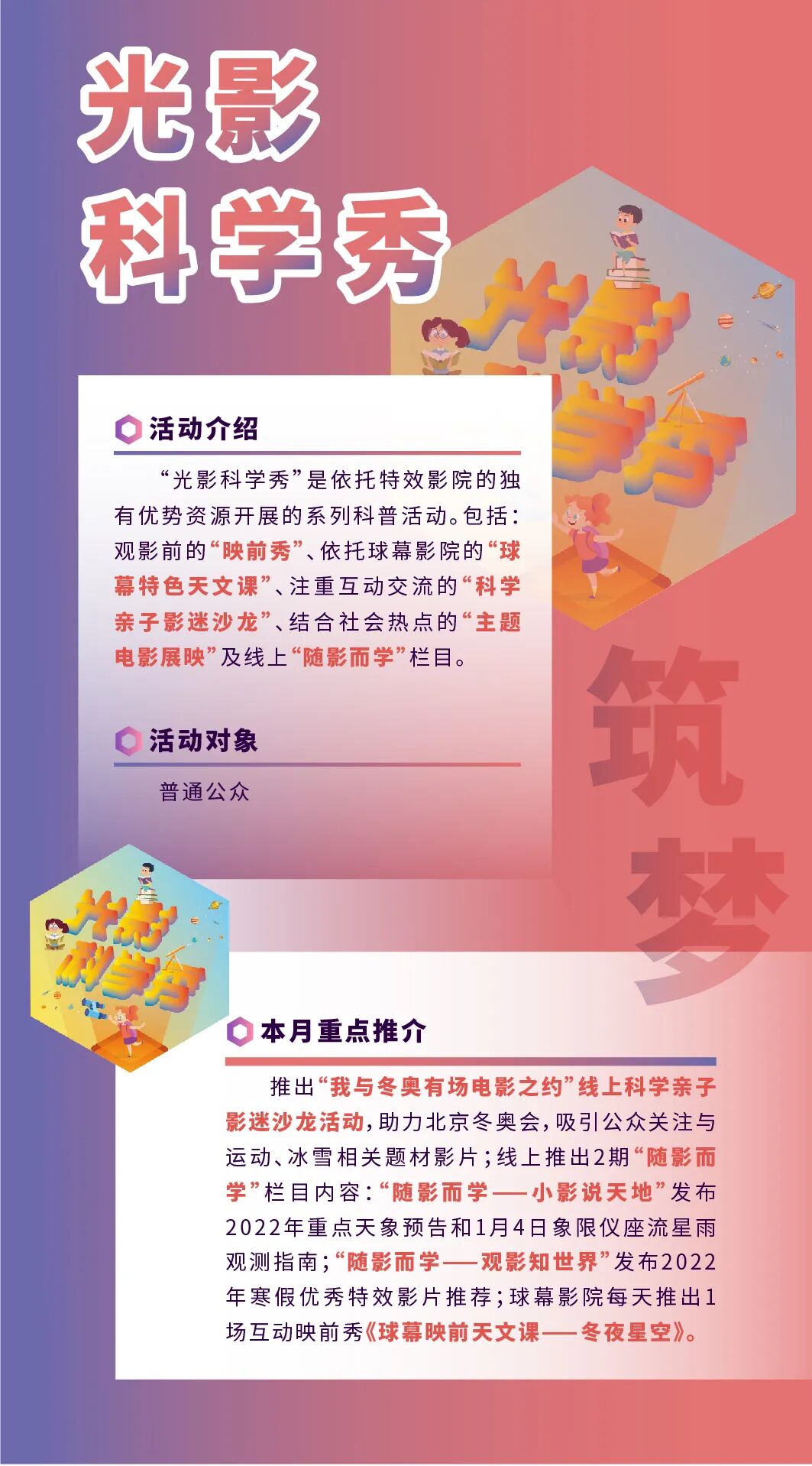 功能介绍 中国科学技术馆是我国唯一的国家级综合性科技馆,是实施科教兴国战略和人才强国战略、提高全民科学素质的大型科普基础设施。主要教育形式为展览教育,同时组织各种科普实践和培训实验活动。