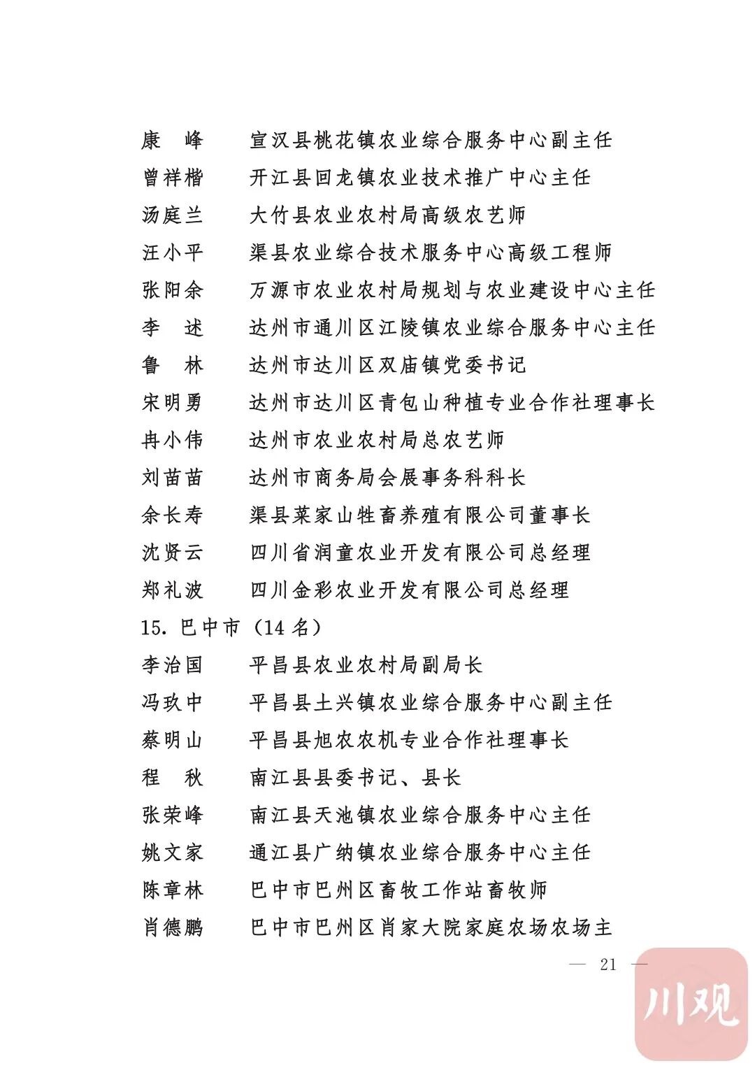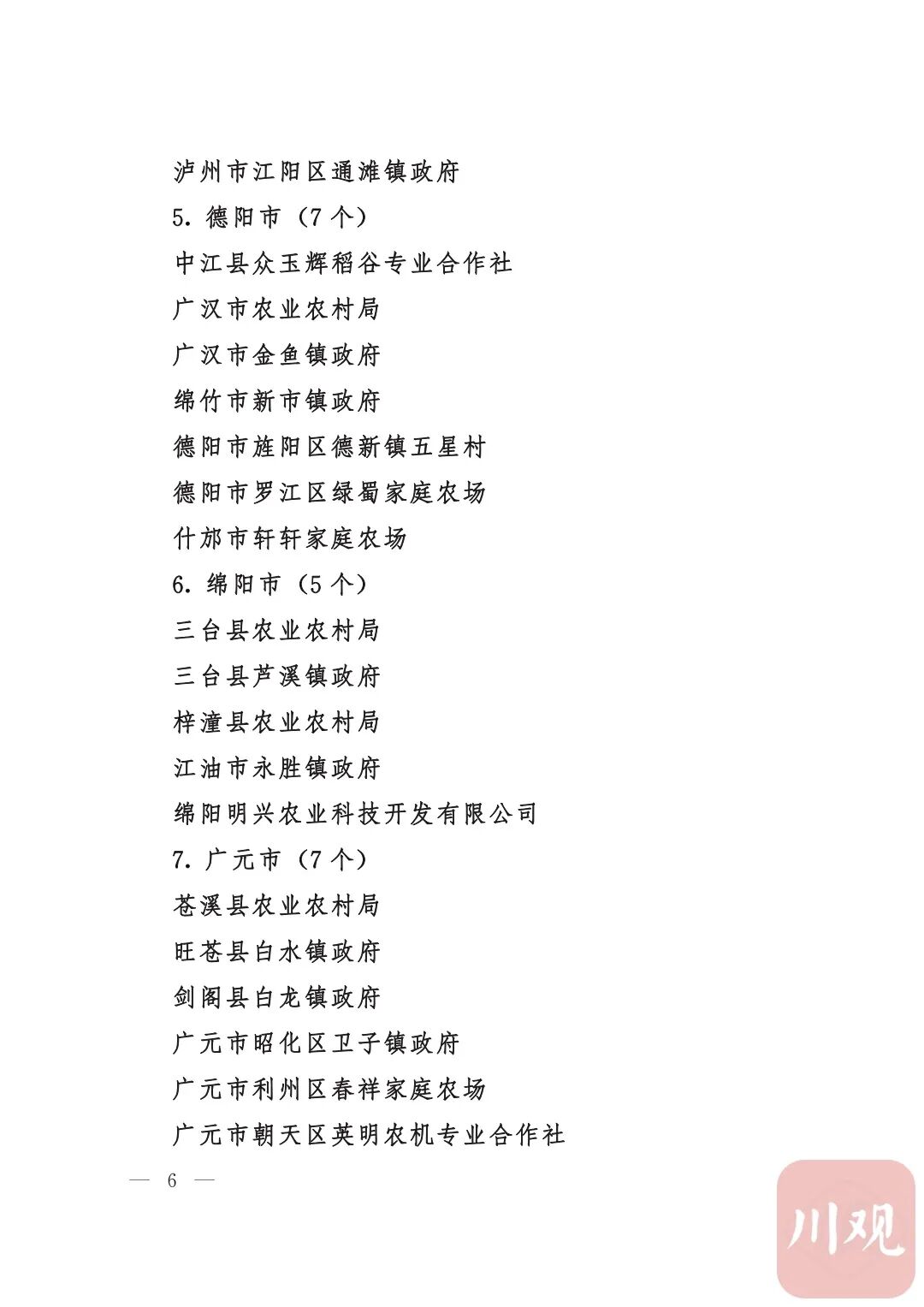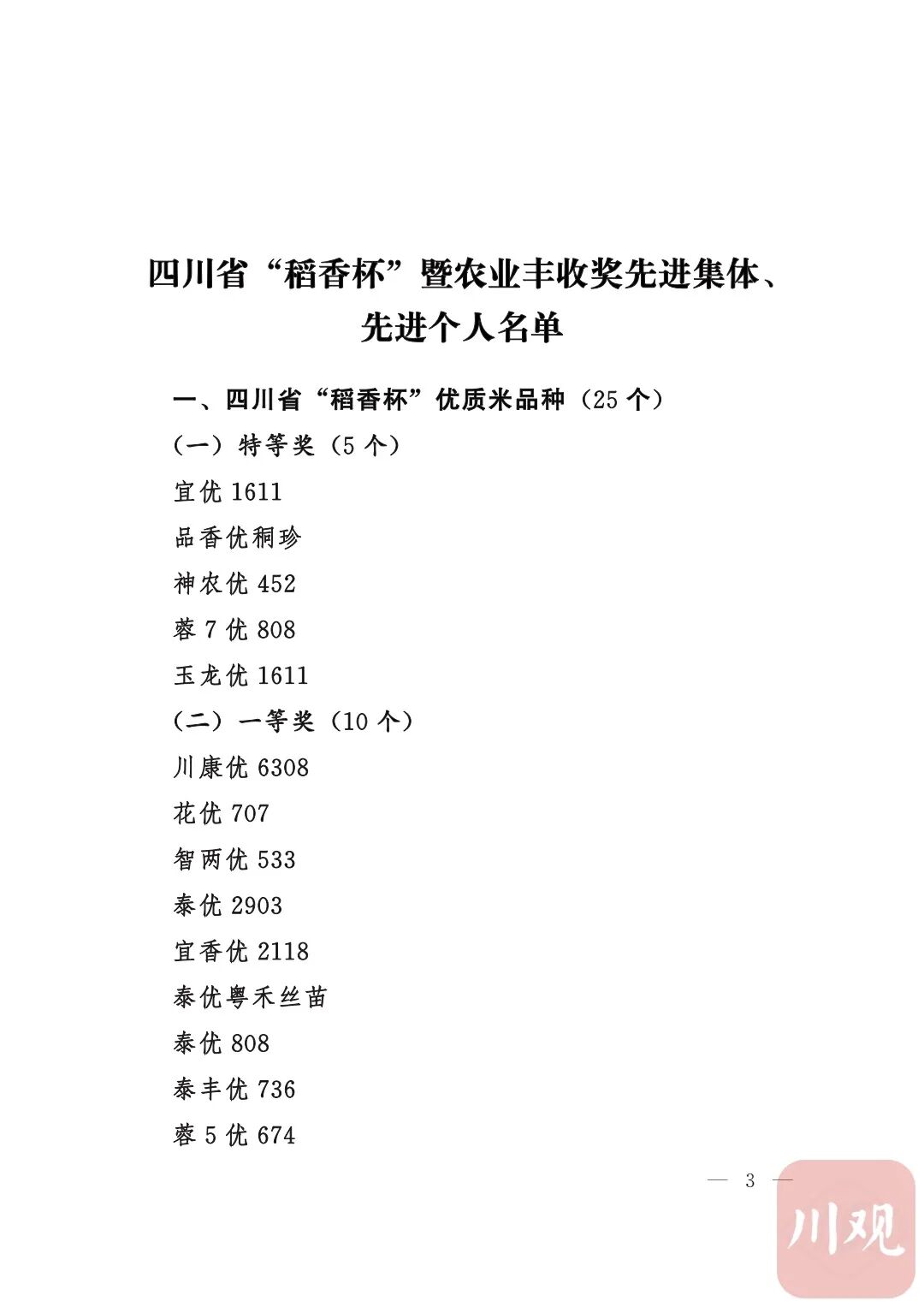 四川省“稻香杯”暨农业丰收奖先进集体、先进个人名单