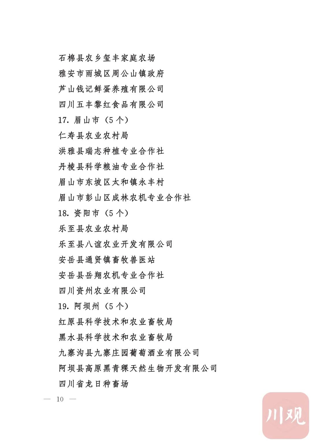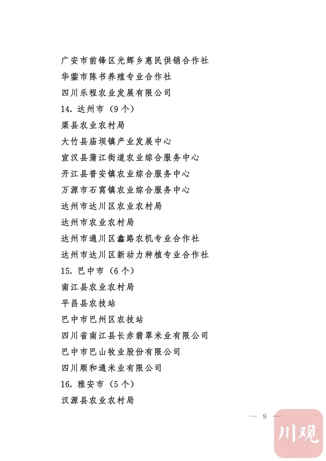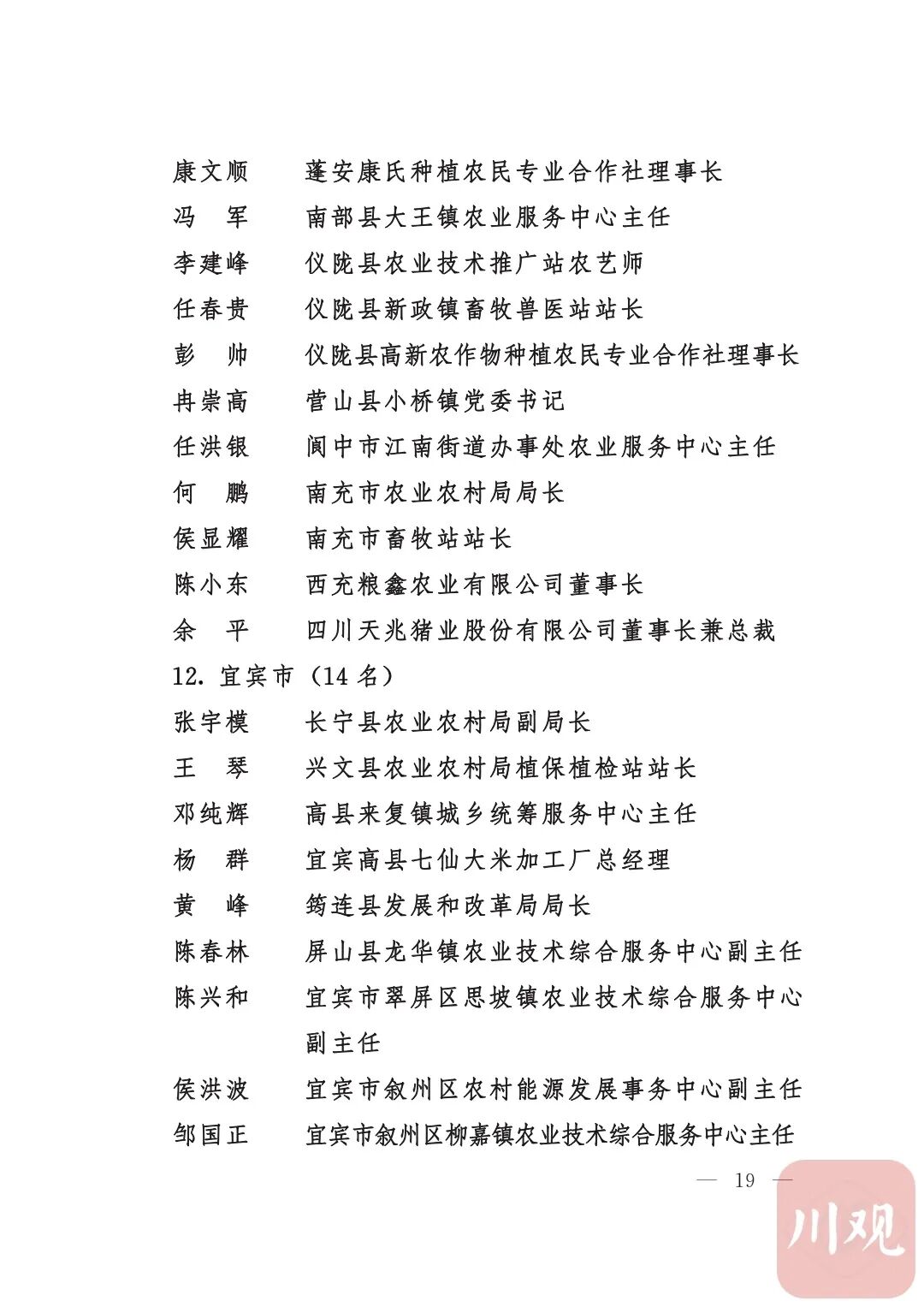 四川省“稻香杯”暨农业丰收奖先进集体、先进个人名单