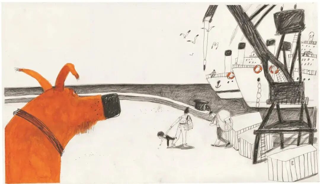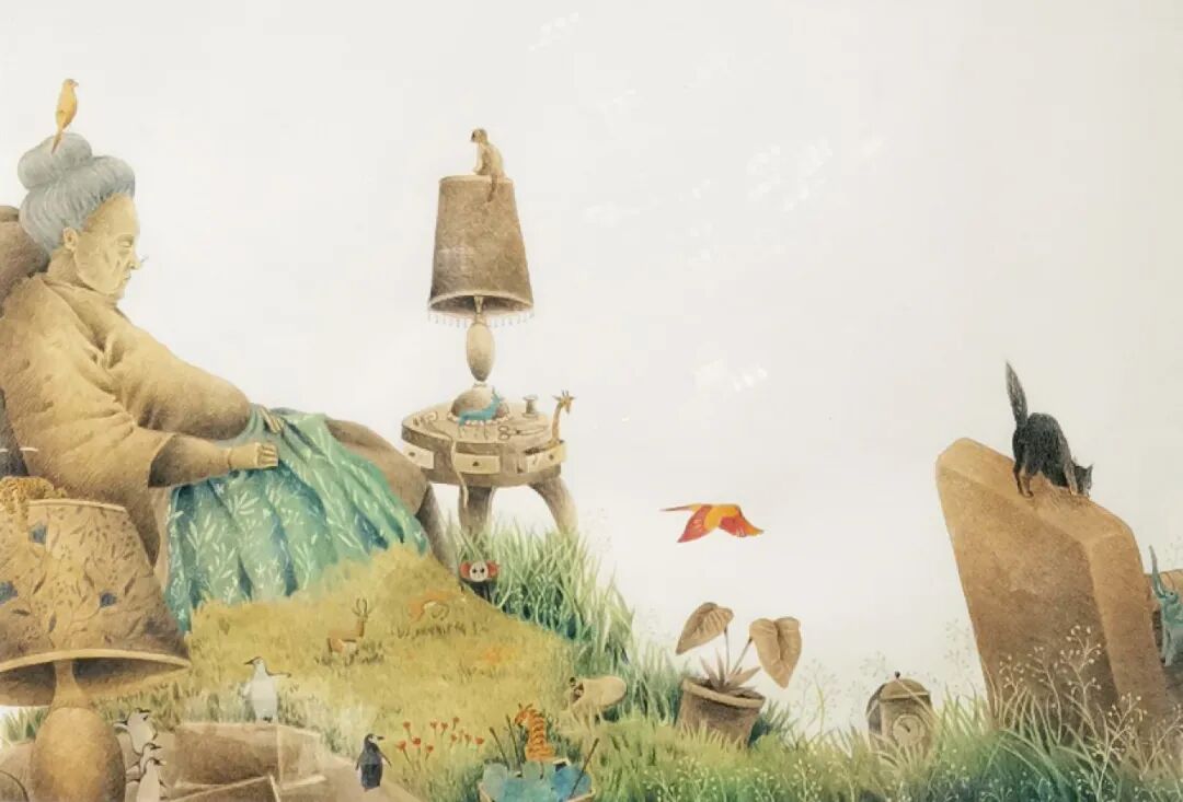 整个展览中,最具环境代入感的一套作品,当属《卢戈顿奶奶的窗帘》。在老奶奶打盹的时候,她亲手绣在窗帘上的动物一个个走了出来,在房间里撒欢儿、捣蛋。