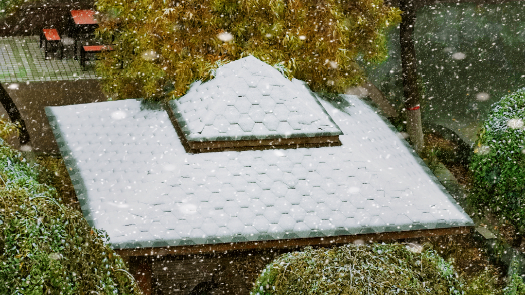 楼影婆娑,银装素裹