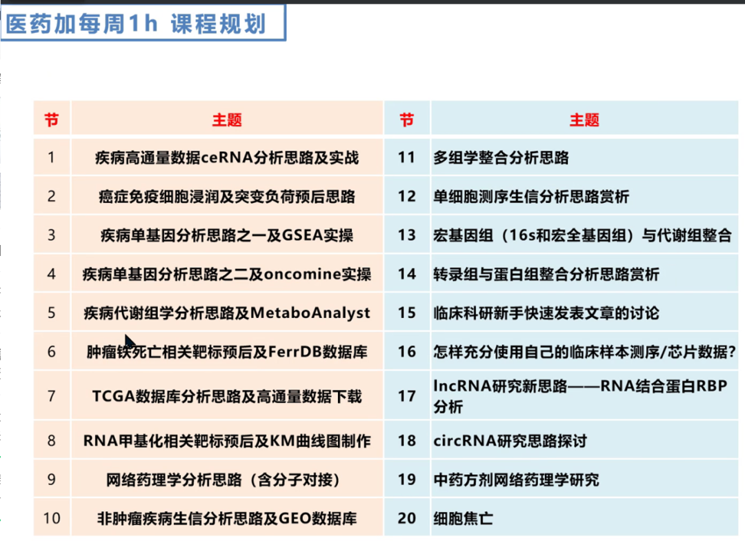 医药加宋老师,已经在生信之家视频号开过下面20门直播授课,累计上万的小伙伴都陆续参加过宋老师的直播授课,现把这20门课都列出来,让感兴趣的小伙伴可以用分享的方式,来领取其中一门视频回放。
