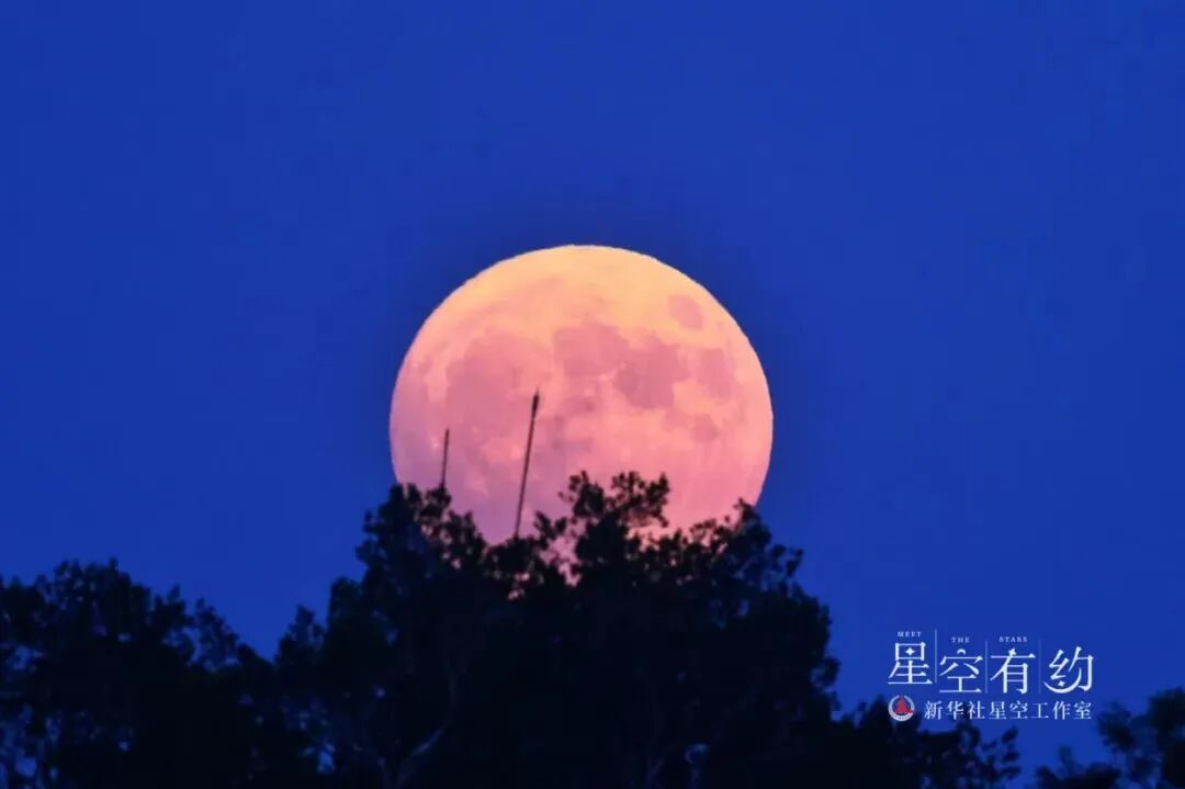 这是北京市天文爱好者王俊峰2022年7月13日在北京北海公园拍摄的年度最大满月。(本人供图)