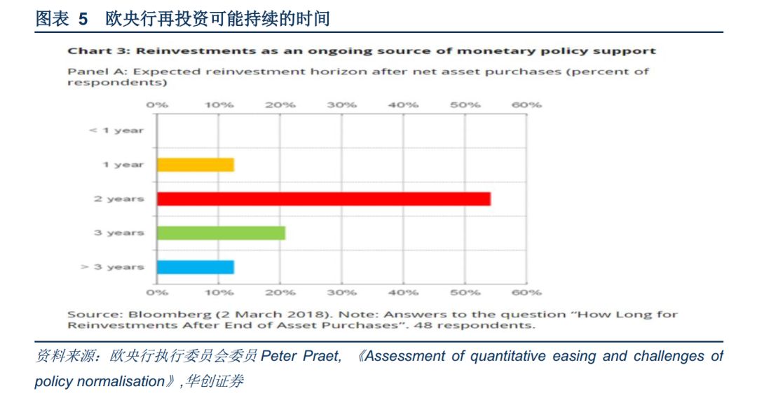 一旦管委会判断通胀持续调整的标准已经达到,则净资产购买将结束。但仍需要剩下的货币政策工具来支持通胀向目标持久的收敛。这些工具主要包括再投资以及政策利率在净资产购买结束后长期保持在当前水平。再投资将维持一段时间,只要有必要将继续持有存量证券。存量效应将给期限溢价带来下行压力。再投资与谨慎政策方法相一致,因为这意味着持续性的渗漏效应(“leakage effect”),随着时间的推移会减弱刺激的效果,但只会逐渐显现出来。