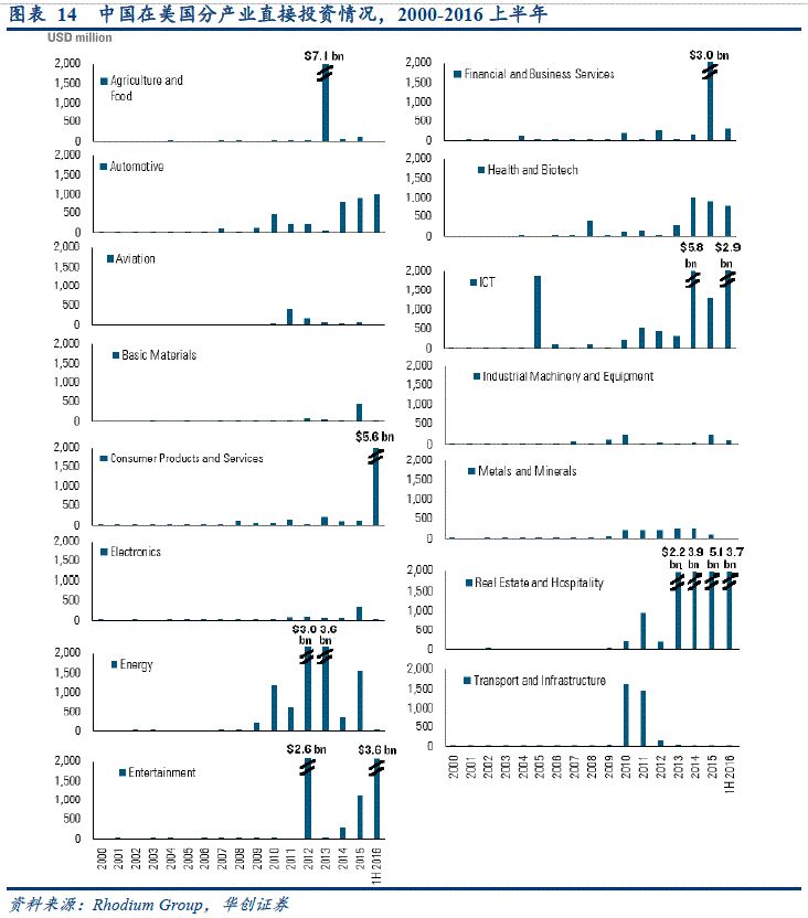 美国贸易代表办公室发布的“301调查”报告指责中国通过海外投资获取美国关键技术和知识产权,并援引了Rhodium Group的报告,面临投资限制风险较大的行业主要集中在海外投资增速较快、且政府主导投资占比较高的行业:汽车(automotive)、航空(aviation)、信息与通信技术(ICT)和能源(energy)等行业。