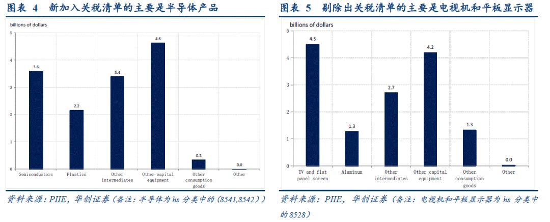 最终关税清单中产品以中间品和资本品为主,消费品占比极低。相比于4月3日的建议清单,根据PIIE在《Trump, China, and Tariffs: From Soybeans to Semiconductors》一文中的测算,新纳入6月15日关税清单的284种约160亿美元商品以半导体产品为主,达到36亿美元;而从4月3日建议清单中剔除出去的产品则主要是电视机和平板显示器,共45亿美元商品。经过调整后,最终消费品的占比大幅减少至1%,而资本品和中间品占比提升,尤其是中间品占比增加至52%。关税清单中消费品占比极低,而中间品和资本品占比非常高的情况下,也就表明在不考虑价格向消费者传导以及企业调整采购决策的情形,实际上加征关税可能不利于美国企业,尤其是美国高科技企业,这也是为什么特朗普加征关税行为在国内招致商界反对的原因,美国半导体行业协会发言人认为加征关税不是帮助而是伤害美国半导体公司、美国工人和消费者。