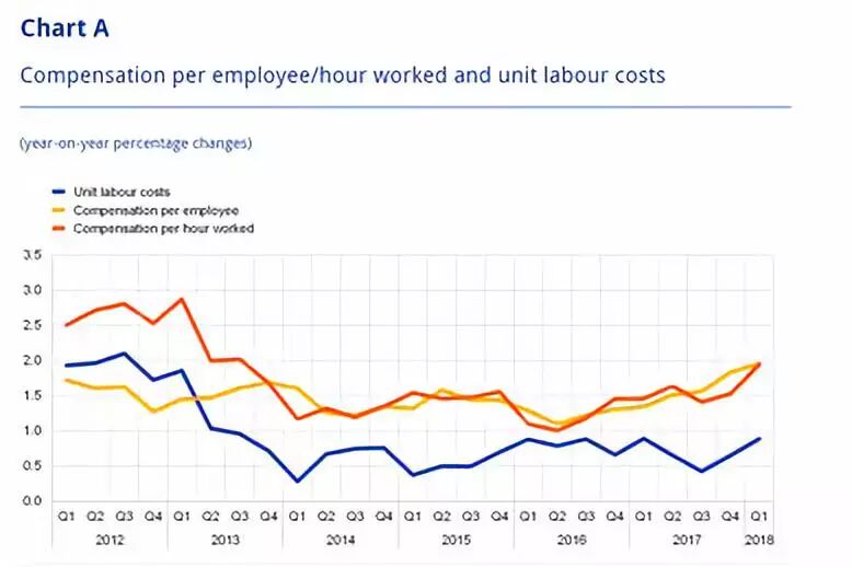 劳动力成本的上升被认为是潜在通胀持续上升的一个重要前提。然而,不同的劳动成本指标所提供的信号出现了混乱。以每个员工的报酬或者每小时报酬衡量的工资增长在过去两年明显有所加强,但单位劳动成本的增长,例如,经生产率增长调整的工资增长,却在过去两年呈现平缓的走势。那么到底那个指标能够更好的反应潜在通胀压力?