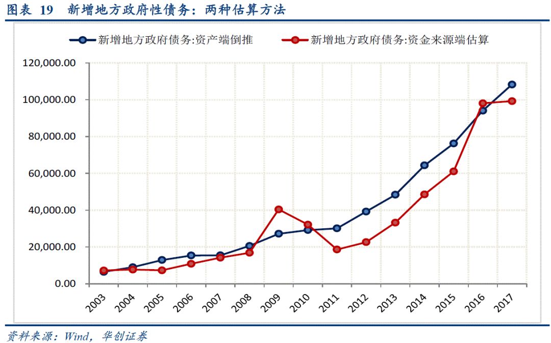 从资产端倒推,既可能高估也可能低估真实债务水平。从资产端的估算方法建立在两个强假设条件之上,一是假设地方政府在基建领域之外没有扩张隐性债务,这将低估隐性债务规模;第二个假设是基建投资全部由政府主导投资形成,未考虑基建投资中民间投资的问题,这将高估隐性债务扩张规模。二者叠加,就决定了这种方法评估出来的债务规模既可能高估、也可能低估真实的债务扩张情况。