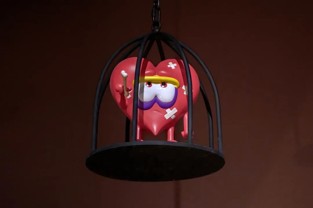 常见于健康宣传片的拟人化器官反复出现在陆平原的创作之中。陆平原以拟人视角,表现当代人对万物丈量的思维尺度,借此捕捉当代人的灵魂面貌。笼子中的卡通心脏似乎在扮演某个童话桥段,也在演绎童话与现实之间复杂的心理空间。