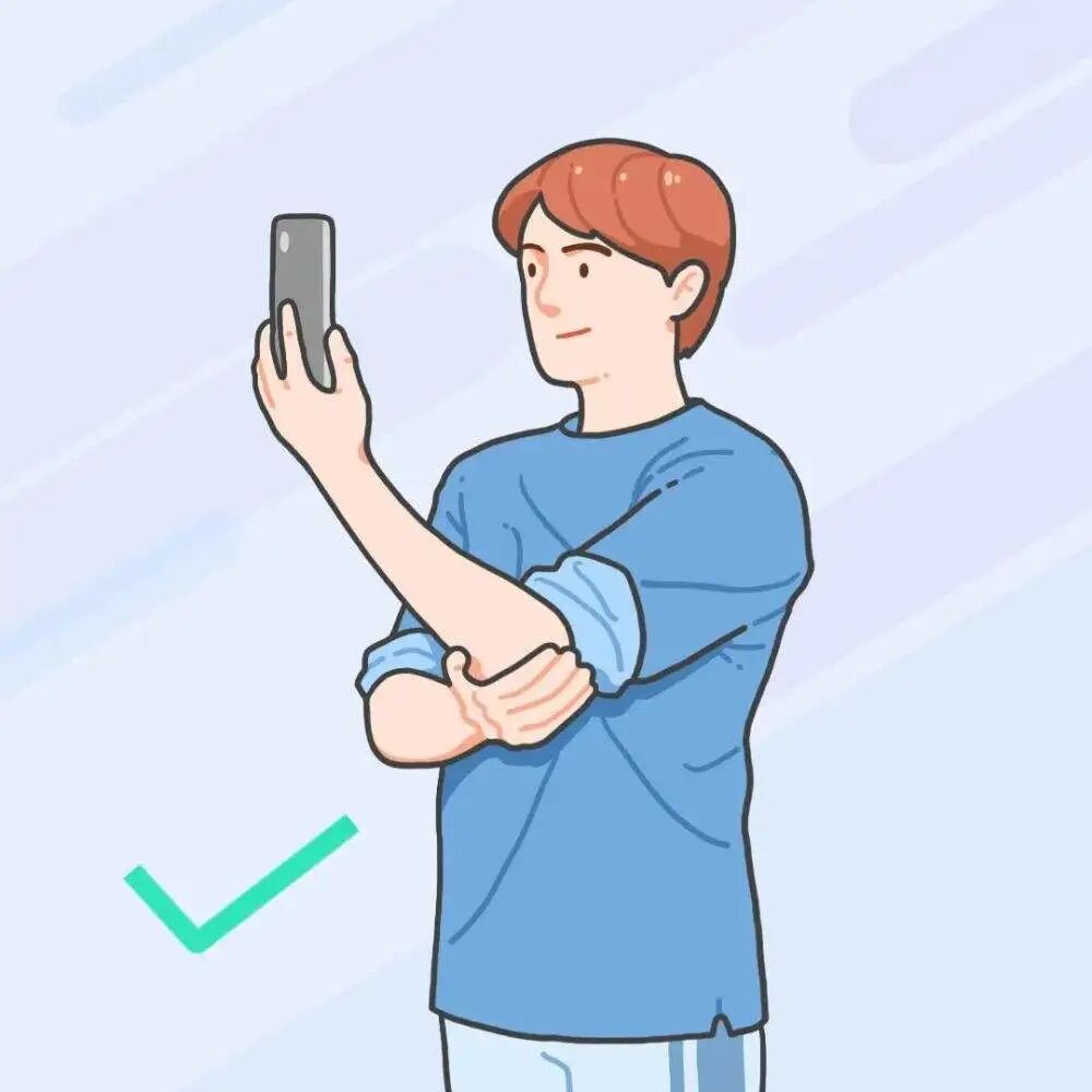 玩手机时,举手机的高度与眼睛一致,视线保持与手机屏幕垂直,下巴不低垂也不仰起,腰背挺直、上半身放松。