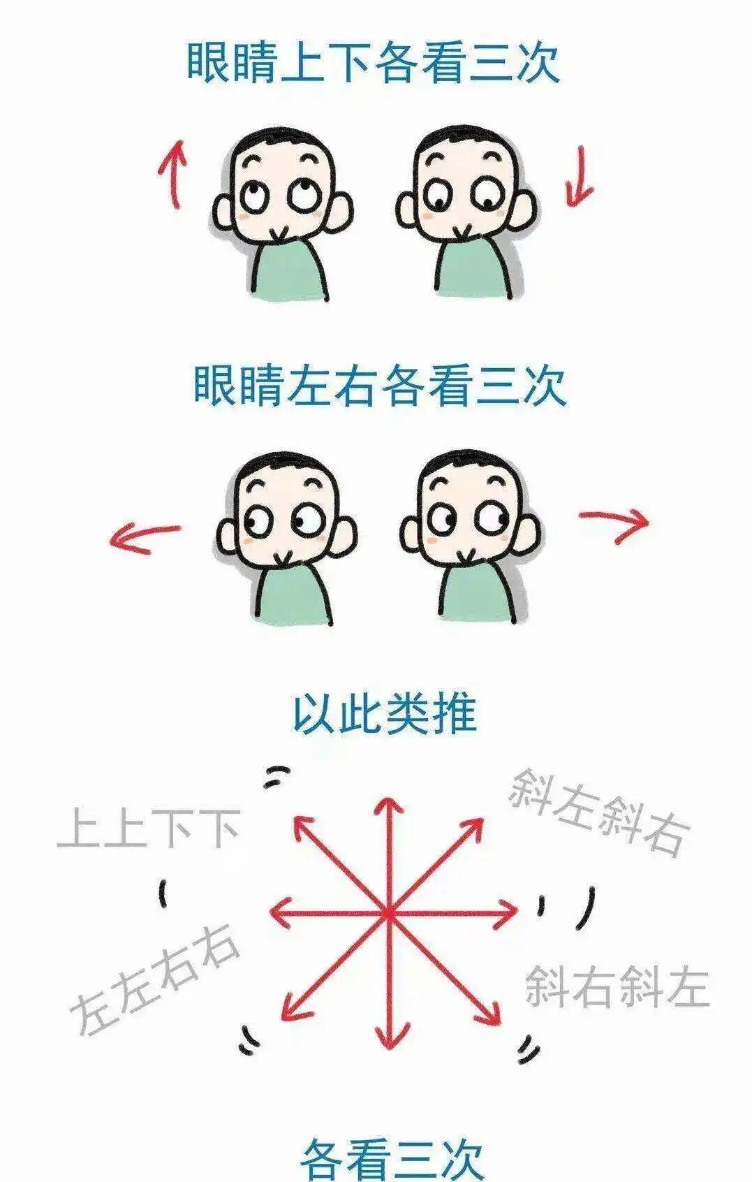 平时注意多眨眼,增加眼球湿润度,尤其是需要长时间紧盯屏幕的人。运动眼球,具体就是每40分钟——60分钟,就要上下左右运动眼球,让眼球做“米”字操。