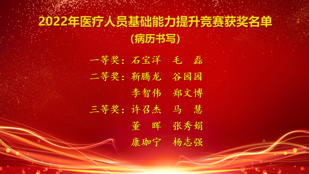 会议现场表彰了2022年医疗人员基础能力提升考核获奖人员及2022年度第一届“叙事医疗”竞赛获奖人员。