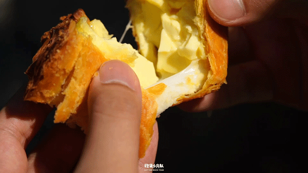 前段时间新开的福气鲜活面包,招牌「酥福挞」也值得一试,千层酥皮手工压膜,趁热吃酥得掉渣,底部加入麻薯,轻轻一扯还能拉丝~