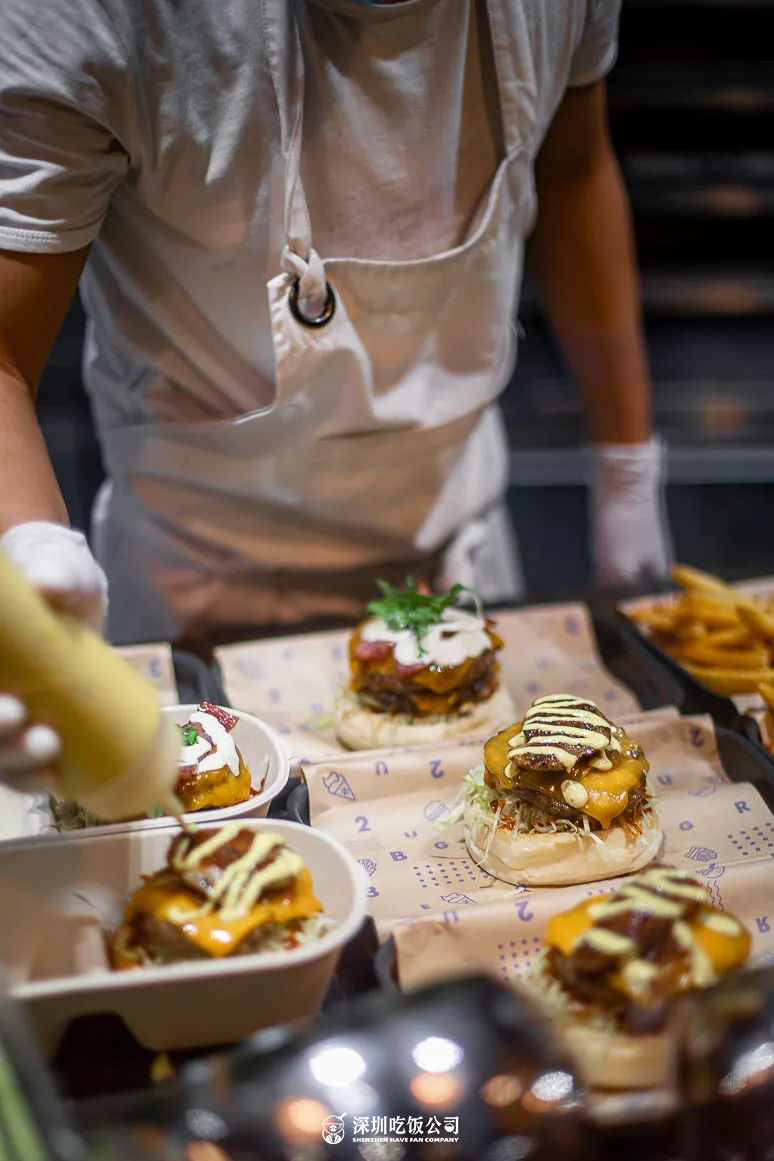 呆男孩汉堡,开在龙华壹方天地,招牌是一道吸引了很多回头客的「回头客汉堡」。他们用的牛肉是美国进口的安格斯牛肉,每天现切现绞后,还要经过人工手打,在送进烤箱用300℃的高温火烤,紧紧锁住汁水,这样吃的时候口感才够juicy。