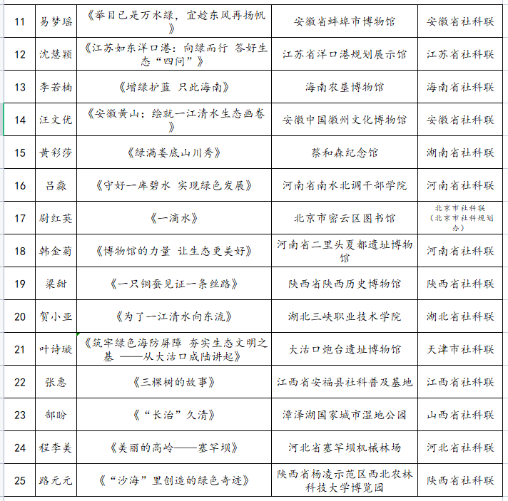 “每次参加比赛,对我来说都是新的历练和成长。本次大赛通过初赛、复赛、决赛的层层角逐,让我看到了参赛选手的精彩展示和视频拍摄的专业性,也学习到了同行的很多优点。”来自甘肃省《甘肃省博物馆》的讲解员杨萧萧说,以后自己会更加努力地宣传家乡生态环境保护和改善,做一名合格的社科普及基地讲解员。