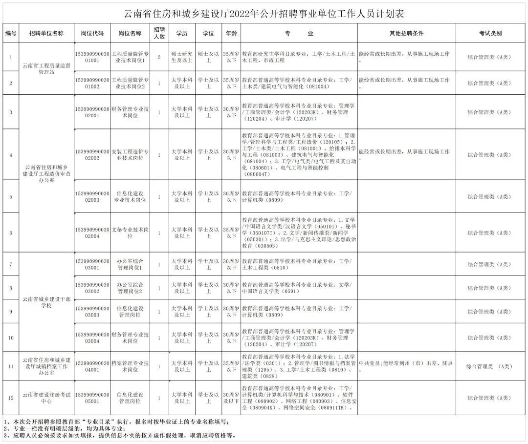 云南省住房和城乡建设厅2022年事业单位公开招聘工作人员公告