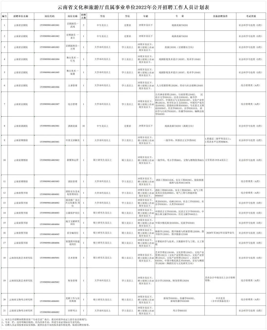 云南省文化和旅游厅直属事业单位2022年公开招聘工作人员公告
