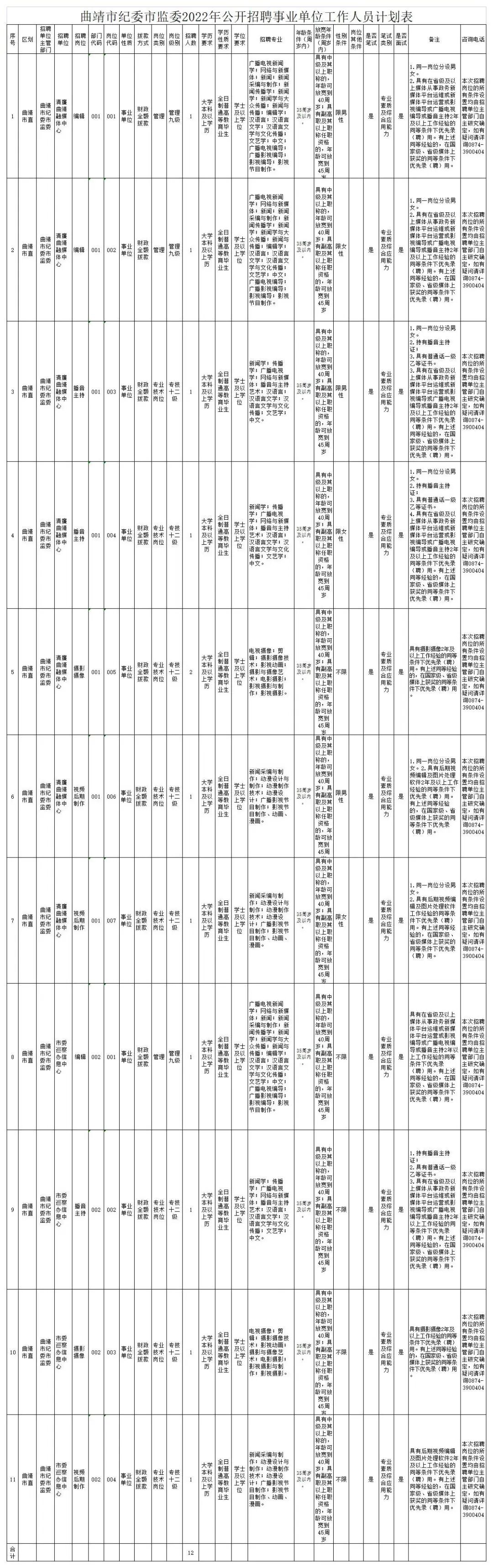 曲靖市纪委市监委所属事业单位2022年公开招聘工作人员实施方案公告(含招聘计划)