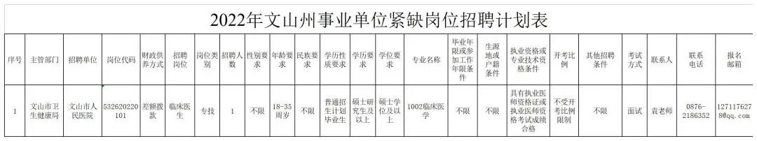 2022年文山市事业单位紧缺岗位二次招聘公告