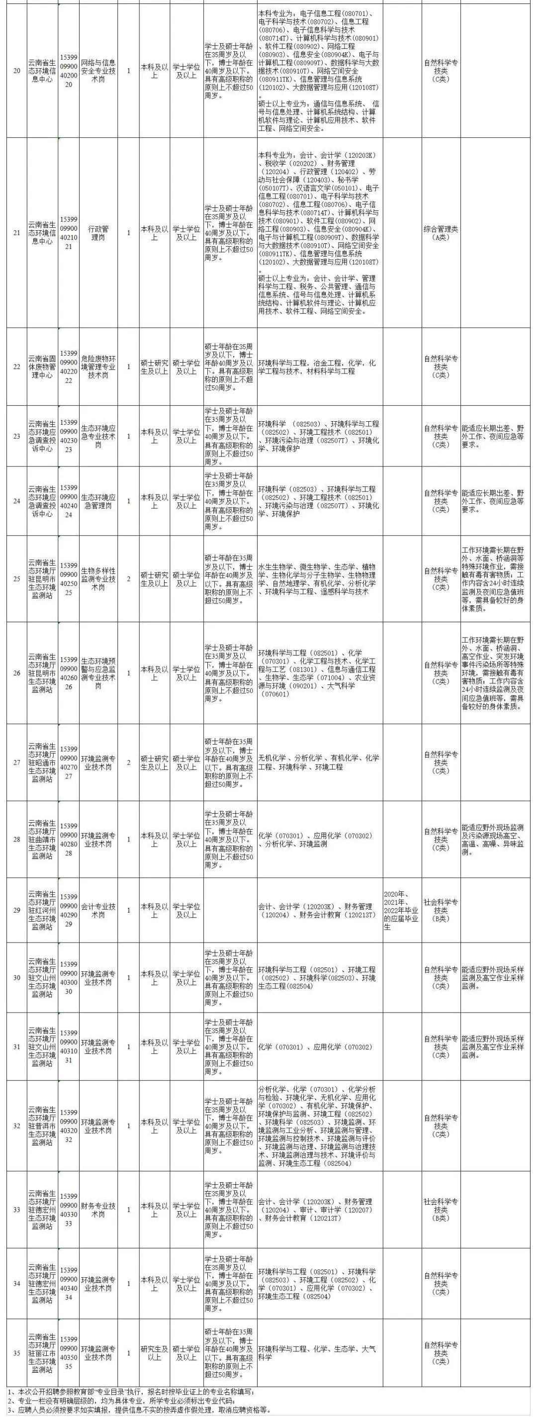 云南省生态环境厅2022年公开招聘事业单位工作人员公告