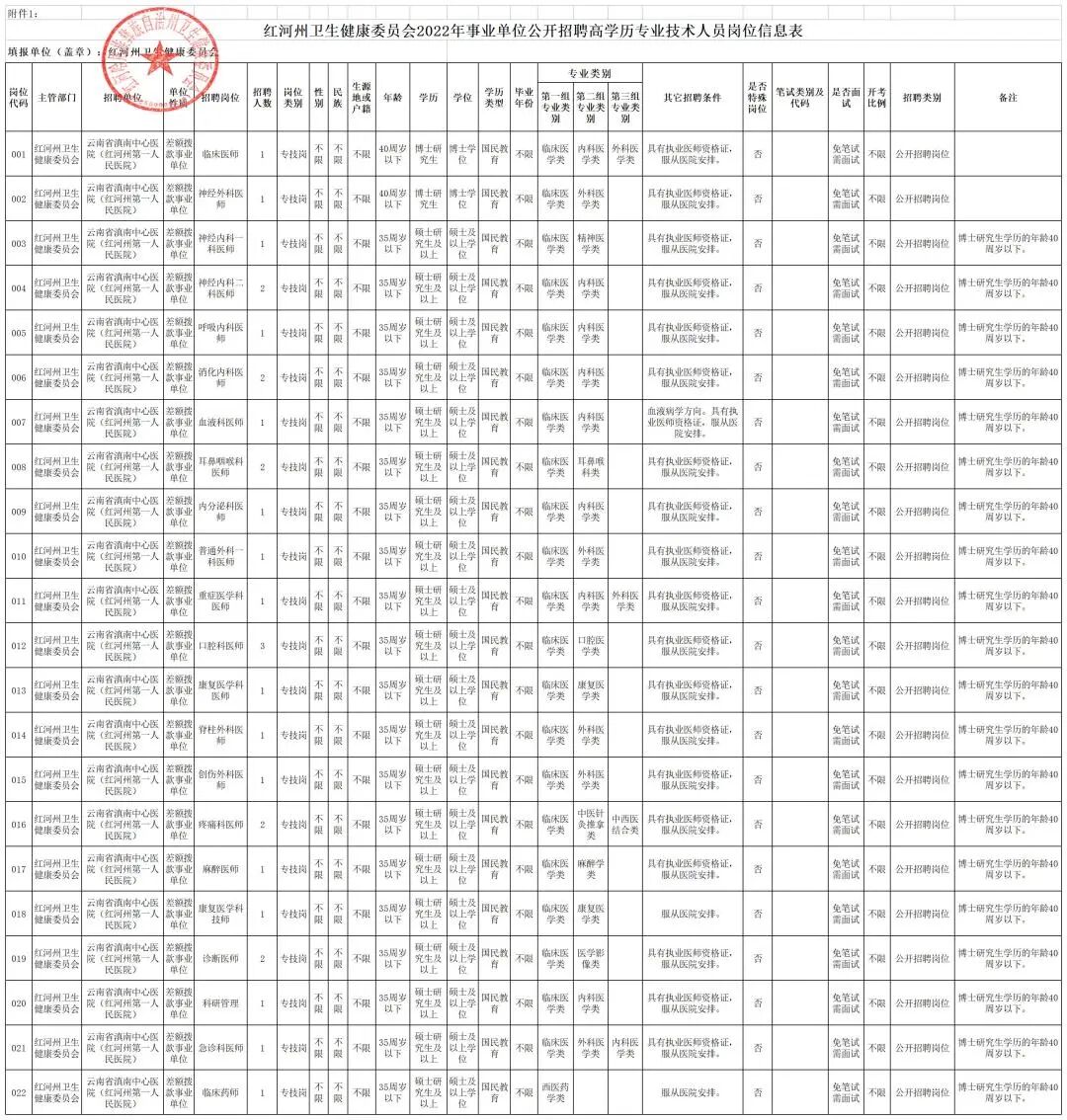 红河州卫生健康委员会2022年事业单位公开招聘高学历专业技术人员公告