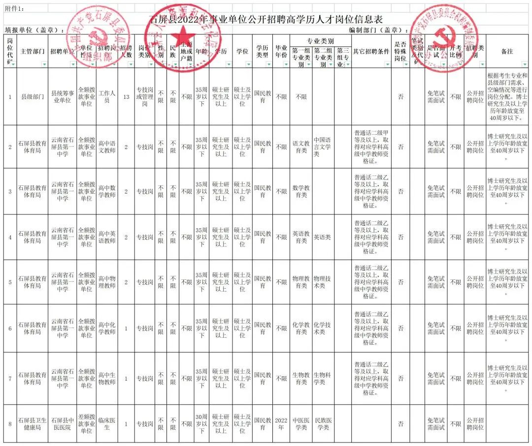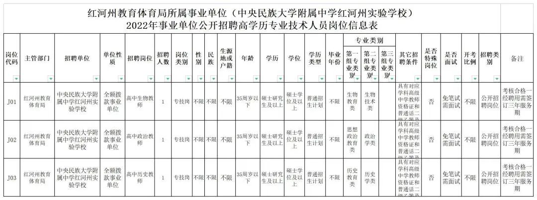 红河州教育体育局所属事业单位(中央民族大学附属中学红河州实验学校)2022年事业单位公开招聘高学历专业技术人员公告