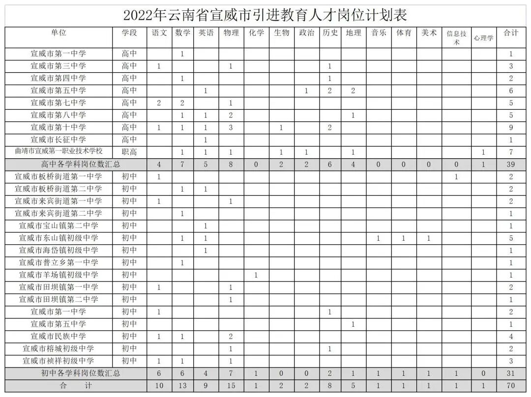 云南省宣威市教育体育系统2022年教育专项人才引进公告