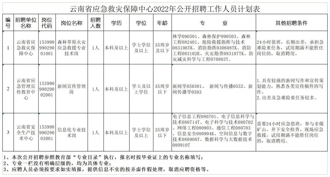 云南省应急管理厅所属事业单位2022年事业单位公开招聘工作人员公告